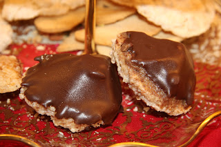 Smeltes sammen og avkjøl litt, dypp kakene i det sett kaldt.