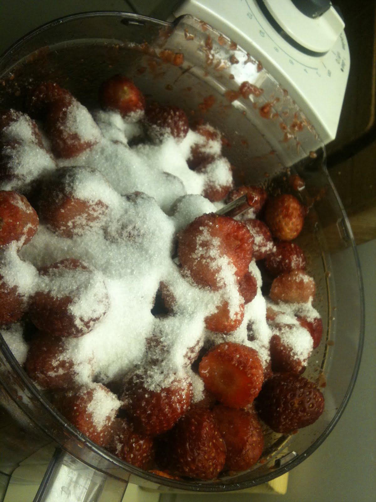 Hell 1,5 kg renset jordbær i foodprosessoren med kniven
